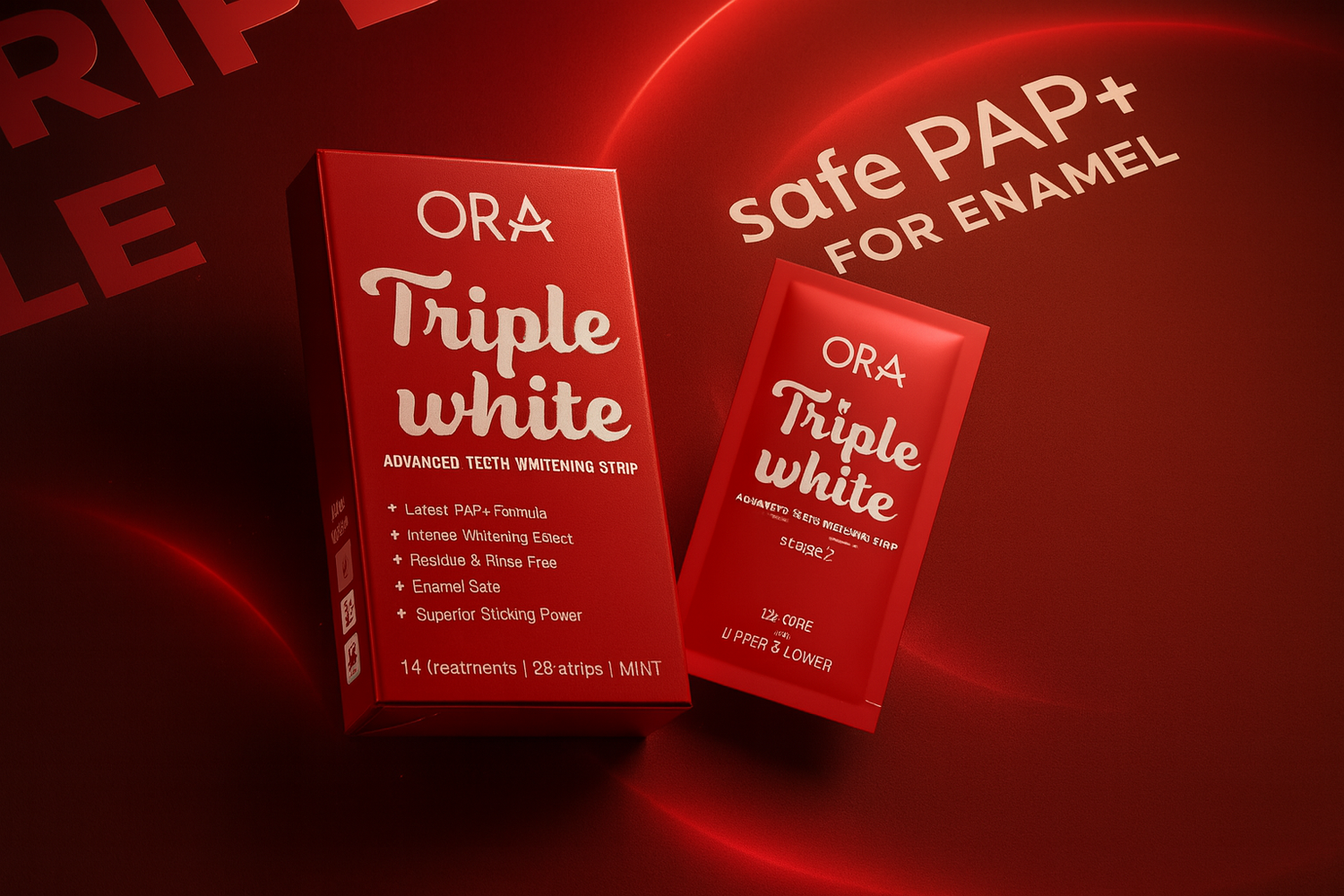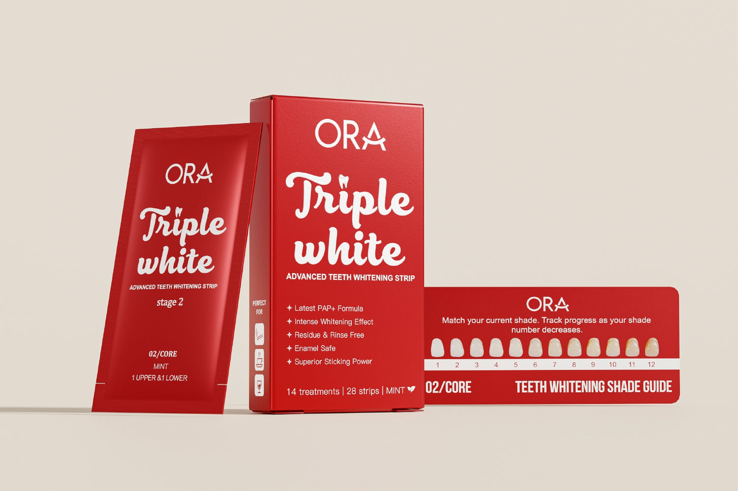 ORA started with a simple belief: professional-level teeth whitening should be gentle, convenient, and honestly priced. We were tired of harsh formulas and overhyped gear, so we built ORA Triple White—enamel-safe PAP+ strips designed for real life: commute, coffee break, quick touch-ups before a night out.